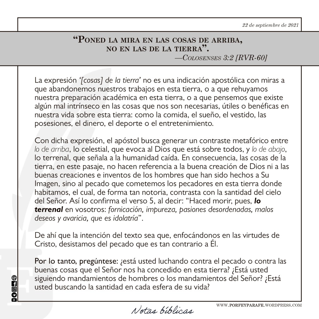 - Las cosas de la tierra (Colosenses 3:2)