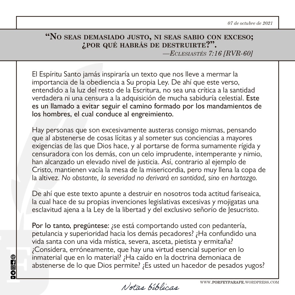 - Justicia excesiva (Eclesiastés 7:16)