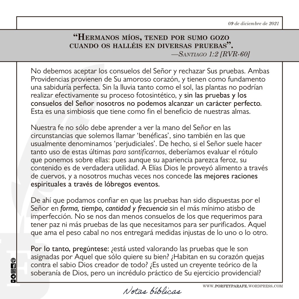 - Pruebas santificantes (Santiago 1:2).